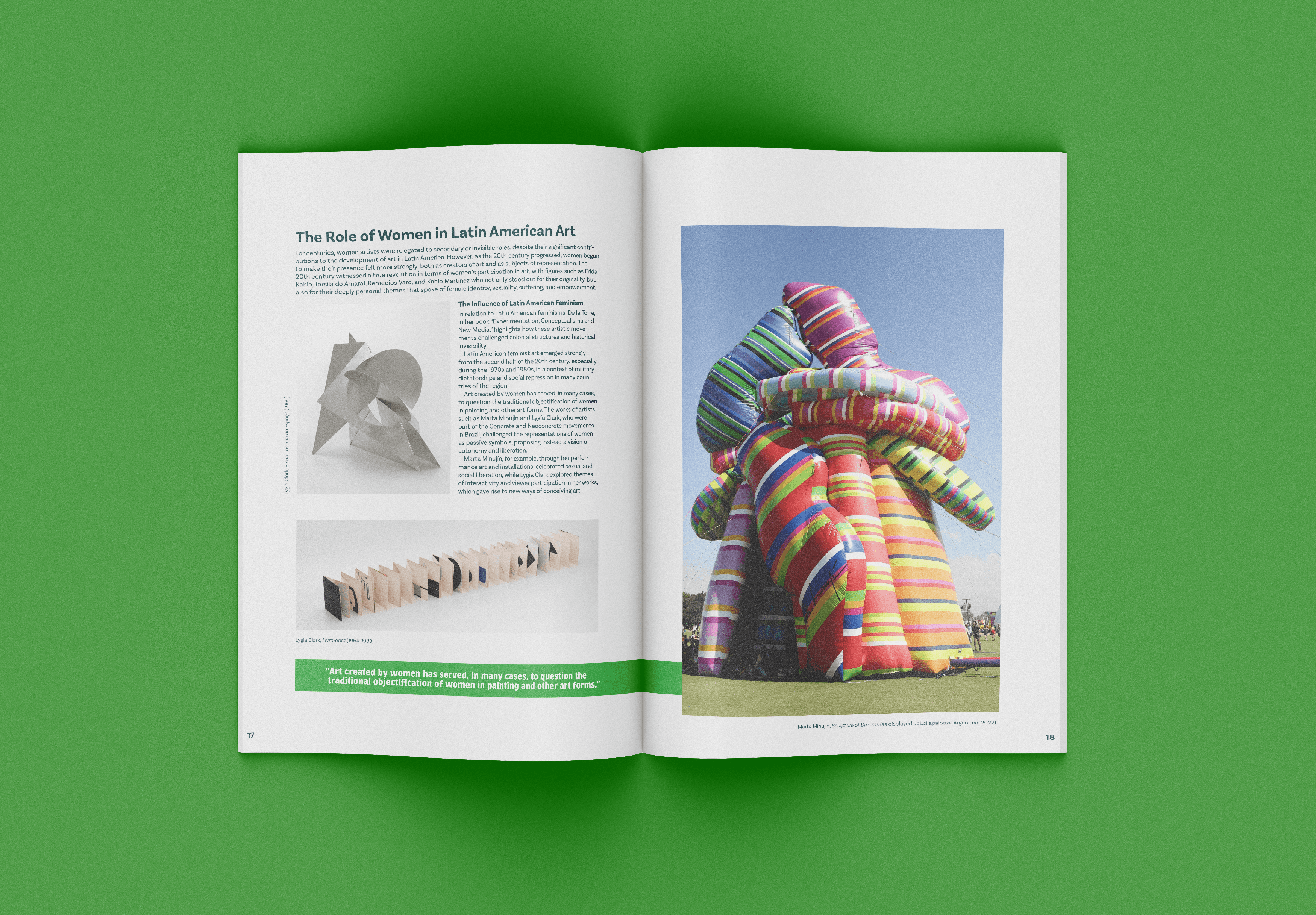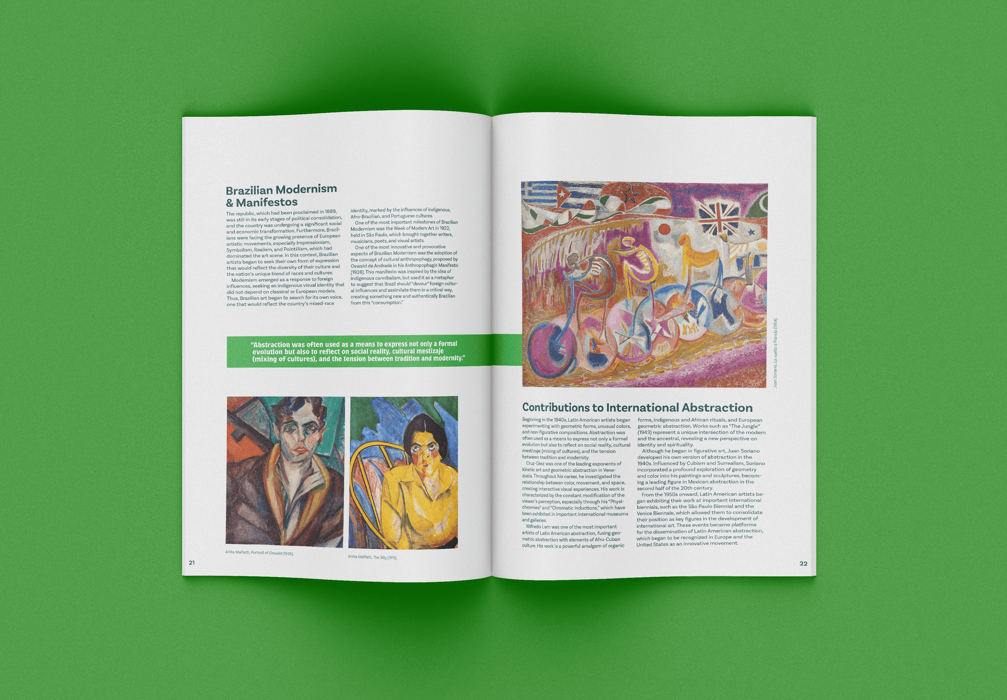 Latin American art is often underrepresented or simplified within mainstream art and design spaces. When it is shown, it is frequently reduced to stereotypes or disconnected from its cultural and historical context. At the same time, editorial design must balance large amounts of information while still creating an engaging and readable experience.